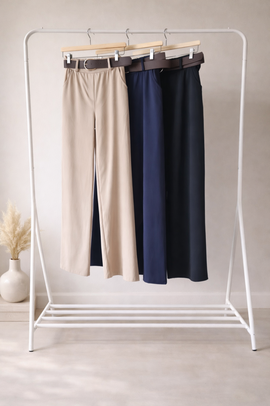 Klasické kalhoty,v pase guma, pásek součástí.Hodně pruží.Materiál...viscoza bavlna.
